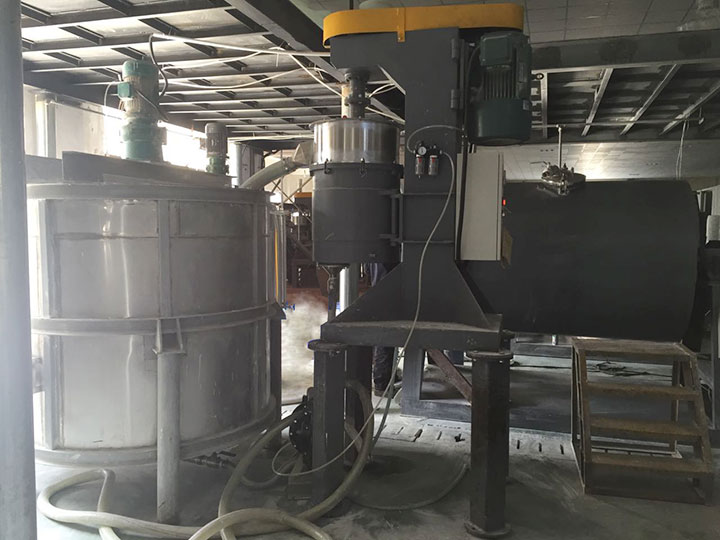 循環(huán)式攪拌球磨機的主要特點是研磨后可獲得窄的粒度分布,磨介和研磨室的投資較少,但能處理大量的物料。料漿可進行連續(xù)的監(jiān)測,其它的配方成份可在研磨過程中隨時加入預(yù)混缸中,敏感的成分可在研磨臨近結(jié)束時加入。因為料漿在研磨室中停留時間短,大部分時間在預(yù)混缸中,因而使得其具有好的溫度控制。